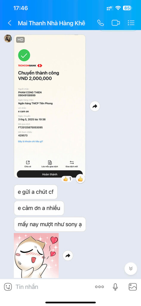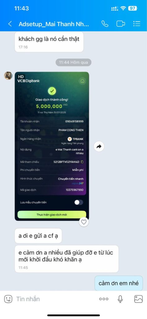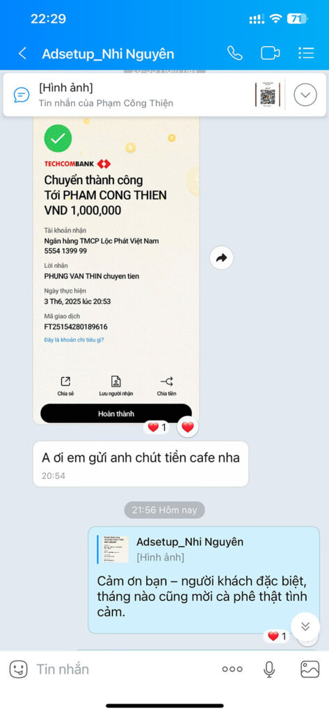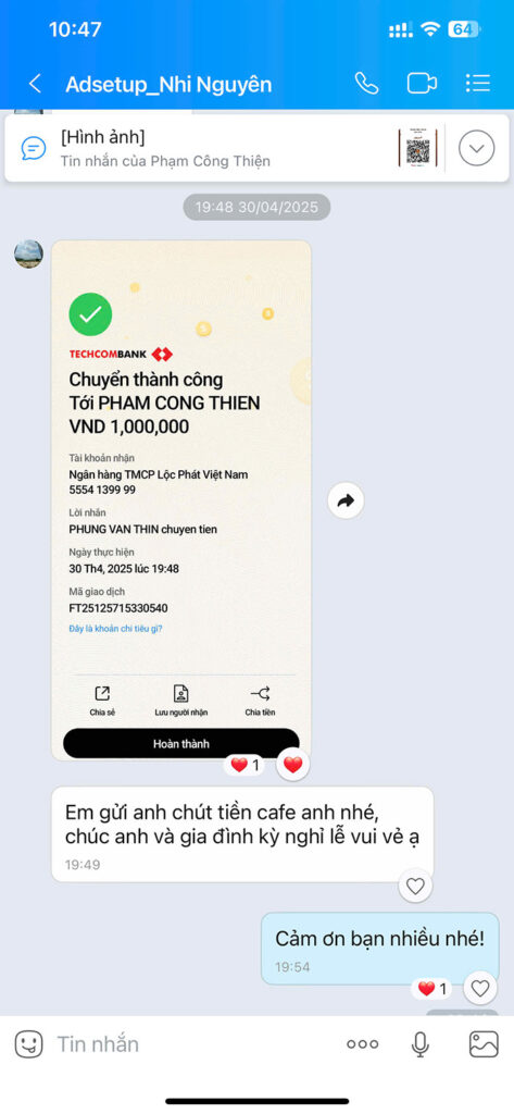Trong quá trình triển khai các dự án thực tế của cá nhân, doanh nghiệp và hỗ trợ học viên, Thiện may mắn nhận được rất nhiều lời tri ân chân thành. Đó là những tin nhắn cảm ơn, những phản hồi tích cực và cả những lời mời cà phê đầy thiện ý.